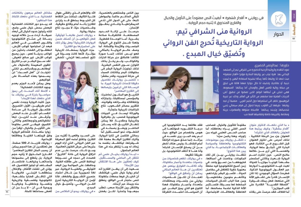 حوار مجلة اليمامة – الرياض عن رواية “أقدار مشفّرة”